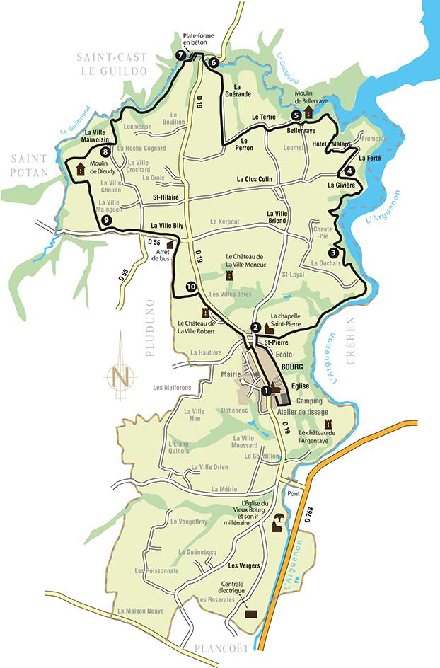 et ramène ensuite à la voie communale qui relie Saint Lormel à Saint Potan.