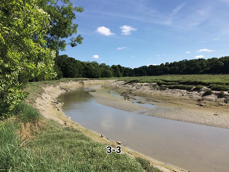 Suivre alors le sentier qui borde la rivière pendant environ 2 km, au milieu d’un marais maritime qui constitue un paysage exceptionnel.