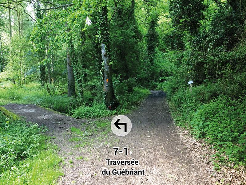 A la 1ère intersection, tourner à gauche : Le chemin traverse alors le Guébriant.