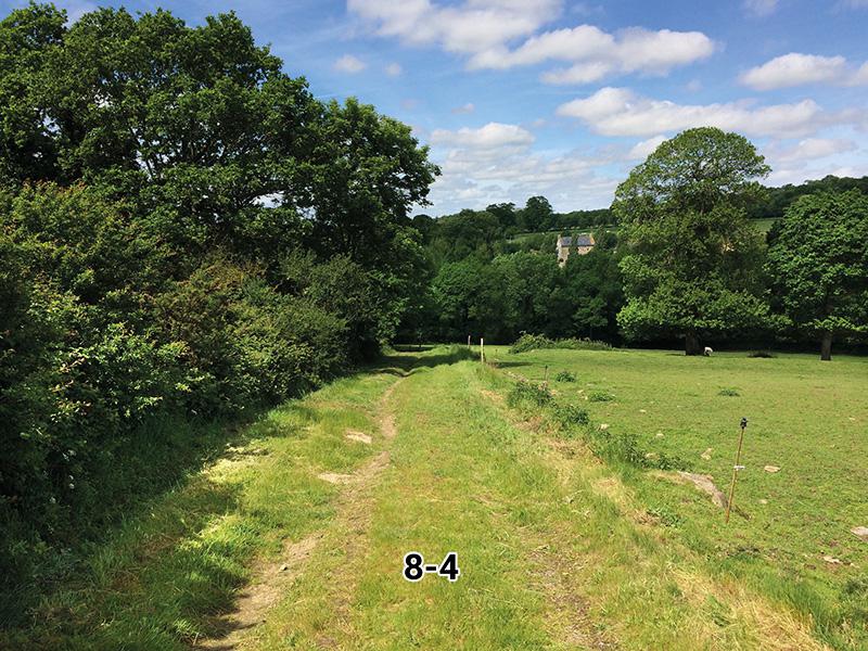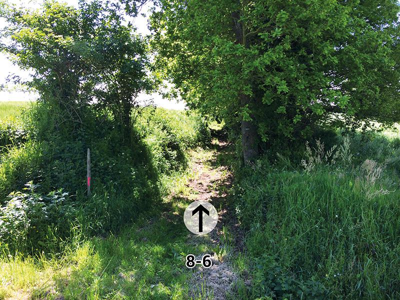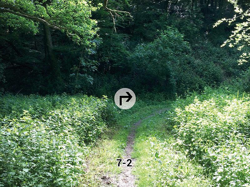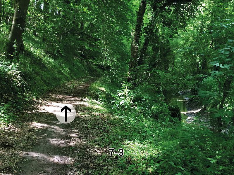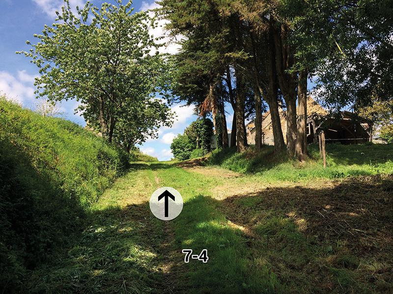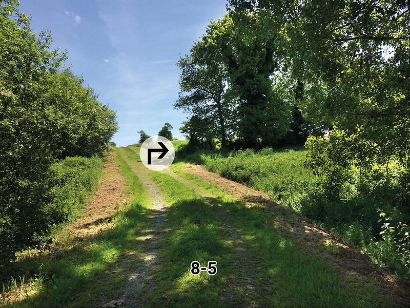 Après être sorti du sous-bois, quitter le chemin d'exploitation pour prendre un chemin creux sur la droite.
