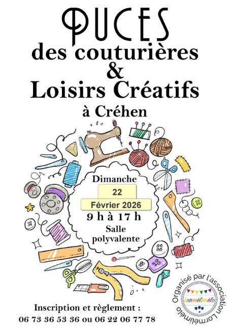 Les Puces des Couturières et Loisirs Créatifs du 22 février à la salle polyvalente de Créhen: