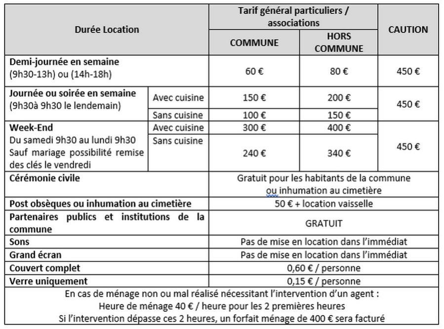 Tarifs de facturation de la vaisselle cassée ou perdue de la salle des fêtes